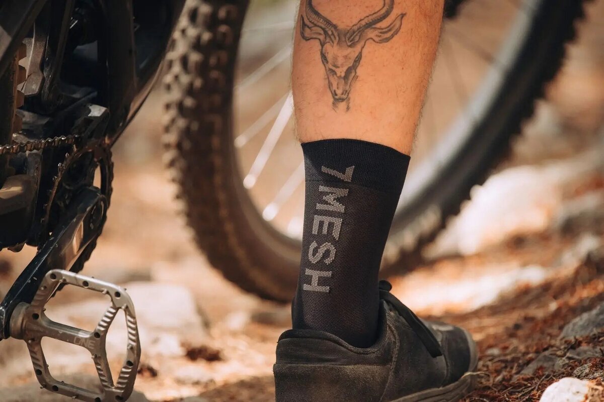Made in Italy, 7mesh Word Sock in Meryl® Skinlife helps you out in hot conditions and stay fresh for longer thanks to Skinlife’s permanent antibacterial treatment. Thoughtful arch support, cooling mesh zones and a rear-facing 7mesh jacquard weave wordmark complete the sock.
